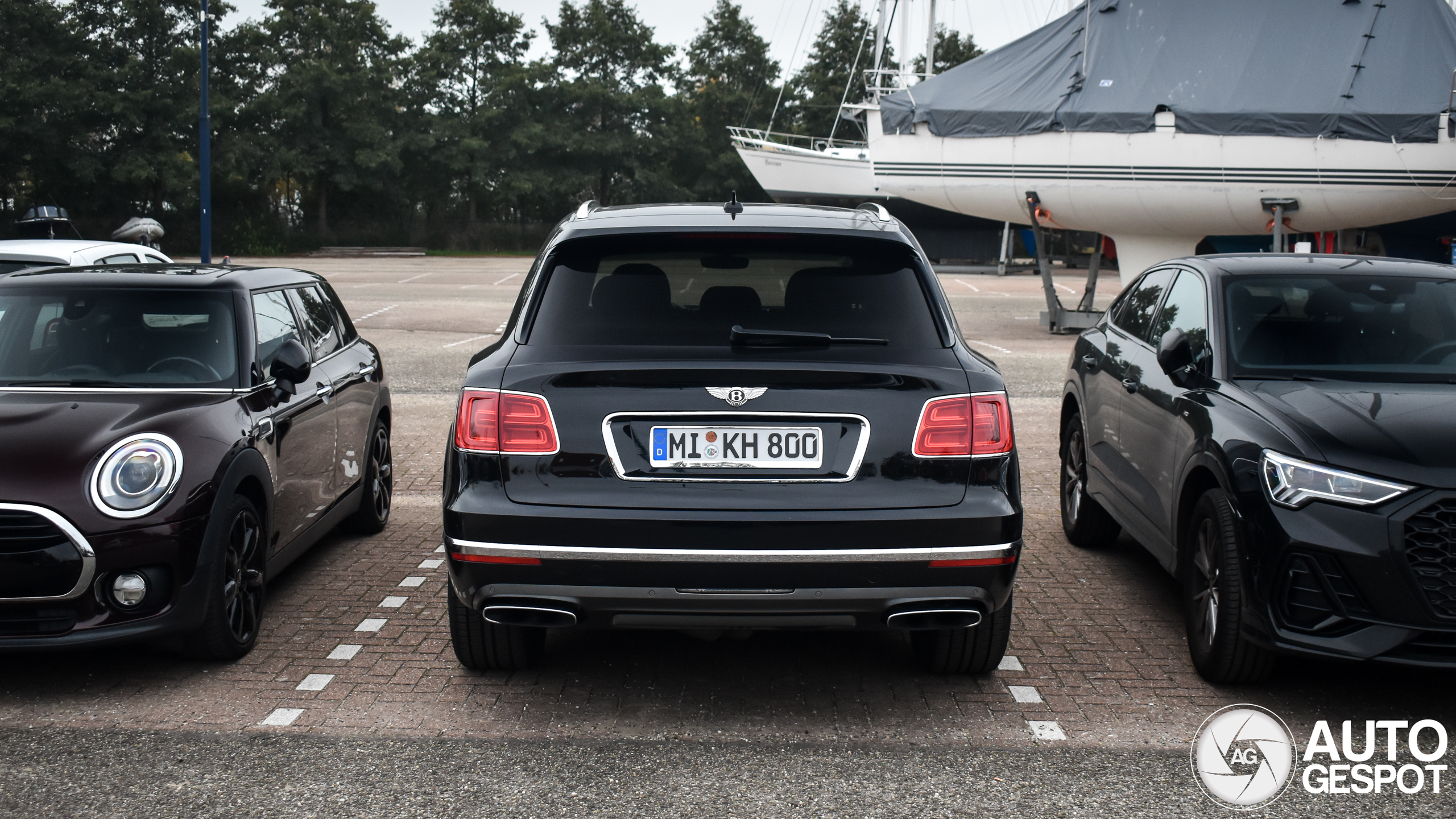 Nieuw pinnetje! Eindelijk iets in deze wereldplaats gevonden. Een bekende Duitse Bentayga in deze omgeving, het misstaat 'm niet. Mooie bootjes op deze parkeerplaats.