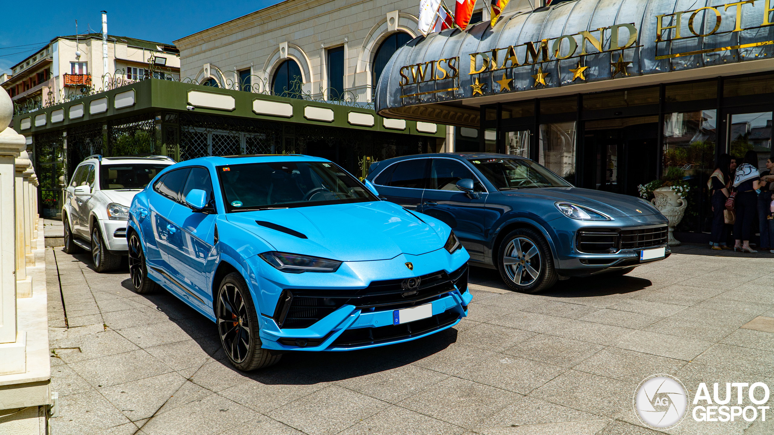 Dit zijn de betere vakantiespots! Eerder die dag zag ik deze Urus S samen met een F8 Tributo door Pristina rijden, maar was ik helaas te laat voor foto's. Later wandelen we langs het chique Swiss Diamond Hotel, en daar zag ik al van afstand een fel blauw dak uitsteken op de parking. Hebbes! Ik mocht gelukkig foto's maken van de portier zo lang ik het kenteken weg zou werken. De Ferrari heb ik helaas niet meer gezien.