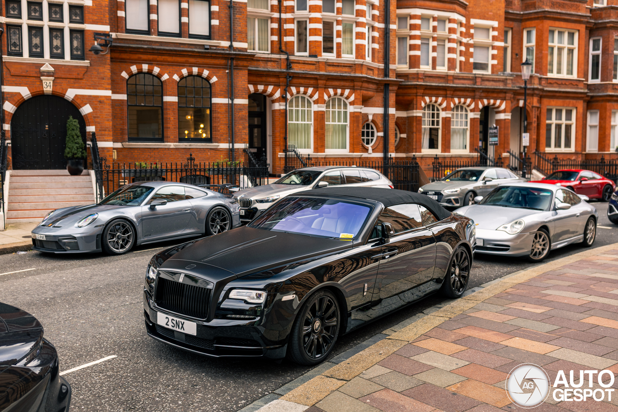 Cool Rolls-Royce surrounded by nice Porsches